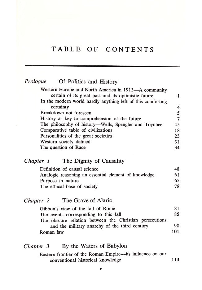 "This book, whose every page challenges widely held views on many subjects, is for the vast audience who have read Spengler, Toynbee, Wells, and lecky."