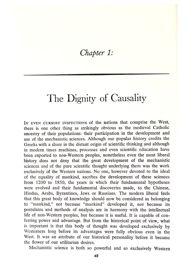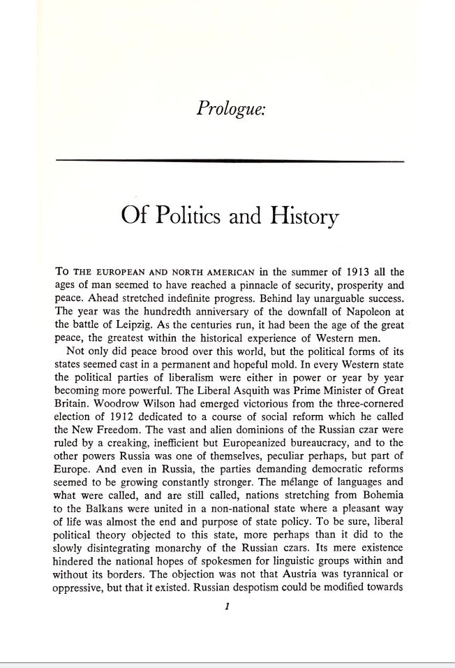 It knocks off the Wells-Spengler-Toynbee triumvirate, liberal-progressive cliches, and modern day leftist polemics- all modern thought is leftist, according to the author.